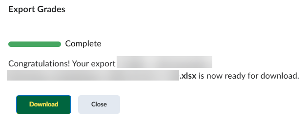 From the Assessments menu on the course navbar, select Grades. On the Enter Grades page, click the Export button.